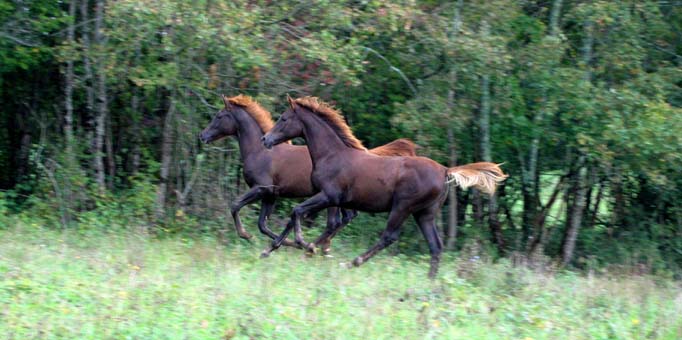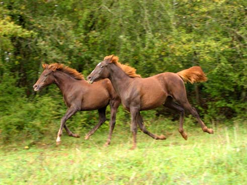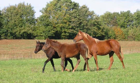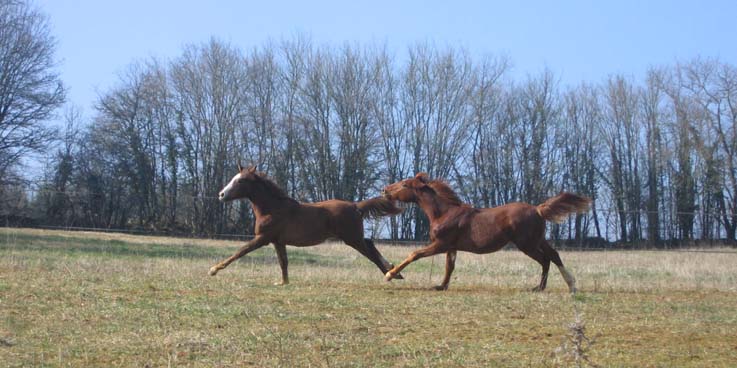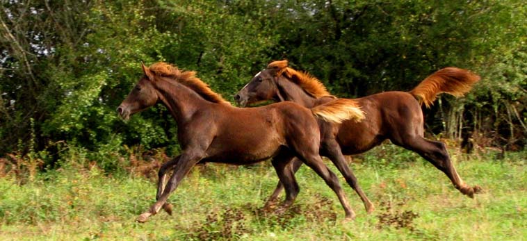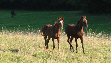 ![]() Naya du Coutillas (Toustem** x Abhishah / Fawzan****) et Ouahila du Coutillas (Chetak*** x Olympia**) été 2002 |