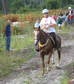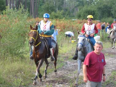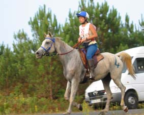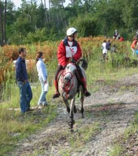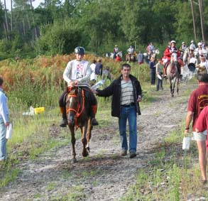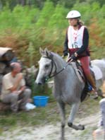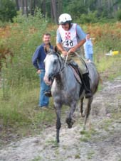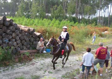 qualité du sol, tout du moins en majeure partie. Le site d'accueil de tous les Vet gates, n'a bénéficié d'une Sono que pour l'arrivée, c'est dans le silence le plus total que se sont déroulés tous les controles.Je crois que depuis Montcuq 2002 c'est la première nationale à laquelle nous assistons où il n'y a pas d'animation. Le fait que plusieurs chevaux venus seulement pour se présenter à l'entraineur national se soient arrêtés volontairement au kilomètre 100 rendait la course un peu bizarre à suivre, enlevant le coté "compétition" qu'il y a sur toutes les autres nationales. Mais avant tout ce qui est de toute façon très regrettable c'est que cette épreuve , qui pourrait être une bonne course, n'était pas inscrite au calendrier 2003,( en tout cas pas à ma connaissance et pas à la connaissances de nombreux autres cavaliers), et sa localisation à 15 jours de Moulins engilbert , à 3 jours de Landivisiau,à 3 jours du championnat de France des jeunes et à 15 jours de Compiègne a certainement privé ces nationales qui étaient inscrites au calendrier , de plusieurs de leurs potentiels participants . De toute évidence , il y a une demande pour ce type de course plate (sur du bon terrain) car malgré son annonce tardive , la proximité des autres nationales et le manque d'information ( de très nombreux cavaliers n'étaient pas au courant de l'existence de cette course et auraient aimé s'y inscrire) les cavaliers avaient répondus présents. C'est un gros travail que d'organiser une