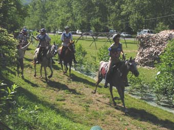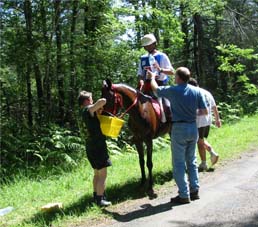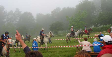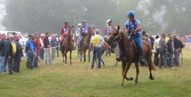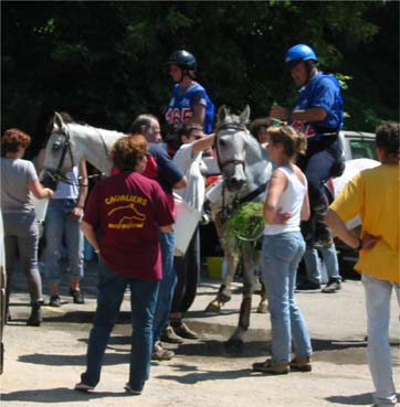 ![]() arrivée au premier Vet gate dans une atmosphère humide et déjà chaude! |