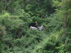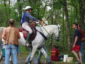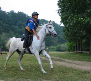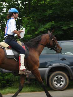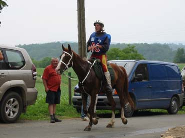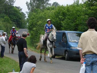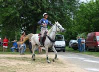 ![]() Farhoz de paute et Céline Scwartz repartent en 3ème postion du dernier Vet Gate, derrière Piacenza et Geruan parti en 2ème position. Geruan rattrape Piacenza , la dépasse, et entre seul sur l'hippodrome de Monpazier. |