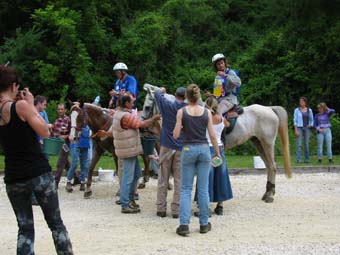 .Coup de théatre à ceVet gate : Jawhar entre le premier, mais Vincent Dupont se voit obligé de le représenter pour cardiaque supérieur à 64, entre temps Jean Noêl entre avec Gerzew qui lui aussi s'avère trop haut ! Et ces deux chevaux qui menaient en tête, se voient lors de leur seconde présentation, éliminés tous les deux pour boiterie ! Piacenza repart en tête du Vet Gate, grace à une très rapide récupération. |