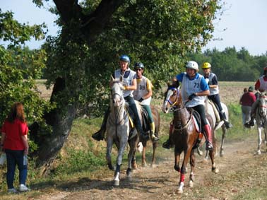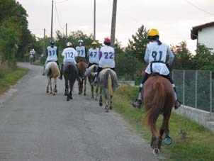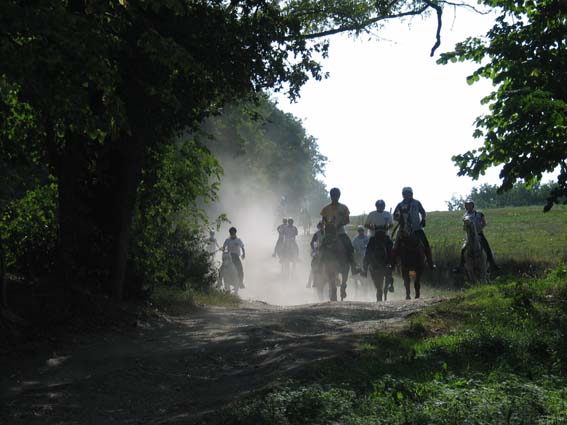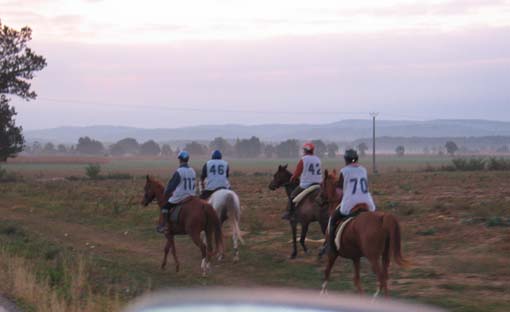 ![]() Le départ à 7h 30 , 110 chevaux s'élancent pour une première étape de 42km |