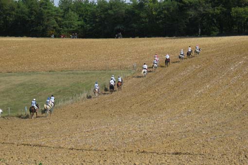 ![]() Sur cette étape, les cavaliers sont encore très nombreux à pouvoir briguer les premières places. |