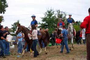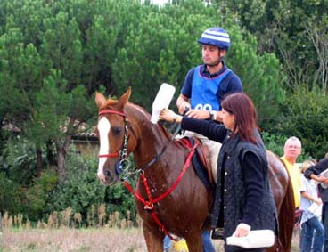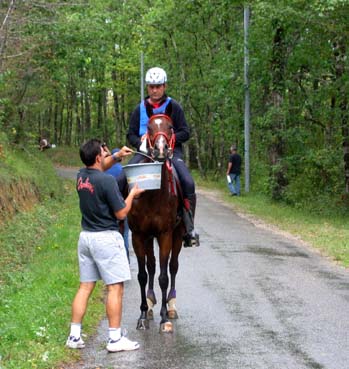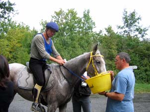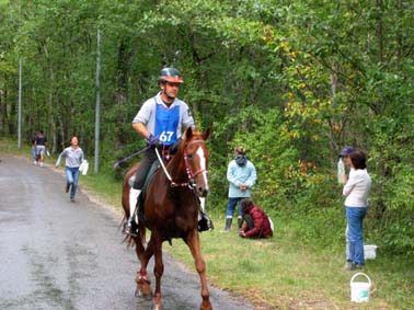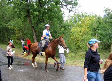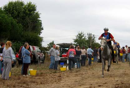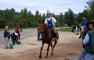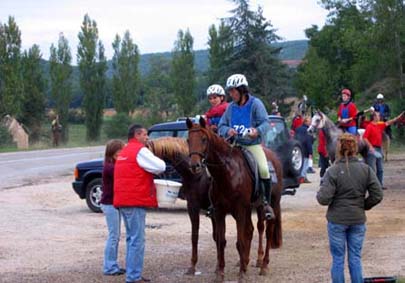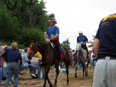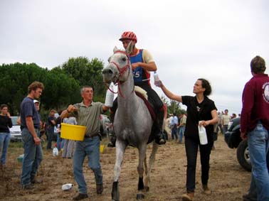L'arrivée de la première étape a été le théatre d'une belle empoignade entre les suiveurs et la table d'arrivée, pendant que de très nombreux chevaux se voyaient interdire pendant plusieurs minutes l'entrée du Vet Gate. Le précieux ticket d'arrivée ayant du mal à être récupéré ! 1 seule table d'arrivée pour gèrer des paquets de 20 à 30 chevaux c'est de l'inconscience !!! Alors forcément , ca a chauffé à l'entrée du Vetgate.... Heureusement ça s'est amélioré pour la suite. Le balisage quant à lui était assez particulier; les balises si elles étaient nombreuses, claires et colorées, elles étaient malheureusement souvent un peu mal positionnées par rapport aux carrefours et prêtaient assez souvent à hésitation. Une chose encore, ce serait bien que les organisateurs n'oublient pas les valeurs originelles de l'endurance même si elles ne sont plus si souvent revendiquées; un des derniers cavaliers à repartir sur la dernière étape s'est entendu dire par une personne de l'organisation alors qu'il s'apprêtait a prendre le départ " Vous êtes sûr de vouloir y aller parce que vous savez ,ce qui est interessant c'est les premiers, après les autres...". Pour le principe également, quand on a le plaisir de pouvoir arriver main dans la main sur la ligne d'arrivée ce n'est pas pour se voir départager par un bénévole zélé et mal informé . Même si ça ne change pas grand chose, c'est plutot désagréable, les 5 premiers ne peuvent pas le faire mais en général les suivants sont libres..... Le site d'accueil du départ est toujours très pratique et très vaste avec son grand parking pour les véhicules et les paddocks des chevaux. Les sanitaires et les douches sur place ajoutent au confort des irréductibles campeurs ! A noter également Sunny