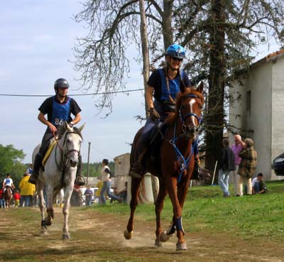 ![]() Départ pour la 3ème boucle pour Halika et Sandrine Blot, suivies de Jade et Jean René Laousse |