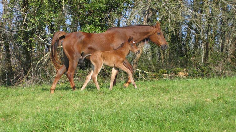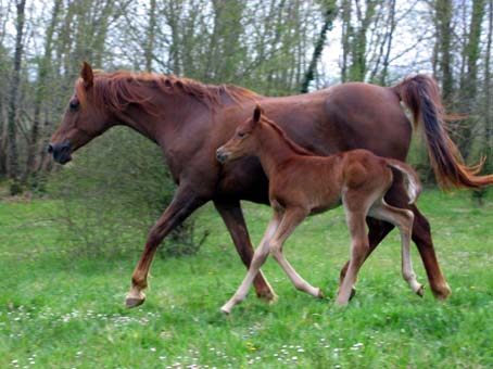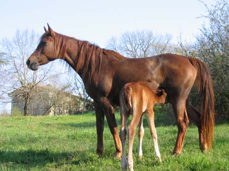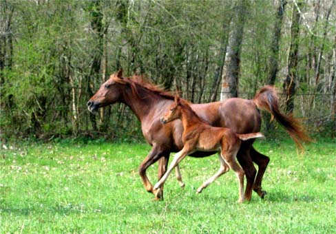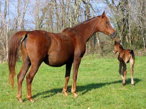 SOUANA D'AROCO** Femelle Arabe 1991 Alezan Brulé 1,54m née chez Jacqueline et Jean Claude Dacquay (24) |